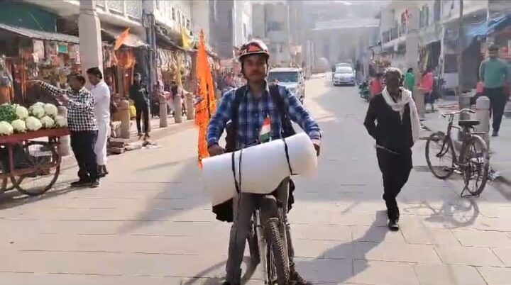 मध्यप्रदेश ग्वालियर का रहने वाले अनुराग गुप्ता इलेक्ट्रिशियन का काम करते हैं कामकाज को छोड़कर भीषड़ ठंड में भगवान श्री राम के प्राण प्रतिष्ठा के बाद अयोध्या दर्शन करने का प्लान बनाया ग्वालियर से अयोध्या तक की यात्रा साइकिल से कर भगवान श्री राम का दर्शन करने के बाद मन बदल दिया. बात करते हुए अनुराग गुप्ता ने कहा कि भगवान राम लाल के दर्शन के लिए निकला था मगर अब हम सभी धार्मिक स्थलों पर दर्शन करने के लिए मन बना लिया है. 12 ज्योतिर्लिंग चारो धाम की यात्रा करना है. 6 महीने से लेकर एक साल तक लग सकता है अब हम साइकिल से ही पूरा इसे करेंगे. अभी अयोध्या काशी जौनपुर मिर्जापुर के विंध्याचल तक यात्रा कर दर्शन पूजन करने के बाद अब हम प्रयागराज चित्रकूट के लिए निकल रहे हैं.वहां से फिर मैहर उज्जैन महाकालेश्वर का दर्शन करेंगे आगे इसी तरह से हमारा यात्रा जारी रहेगा. आखिर में भगवान श्री राम का दर्शन कर समाप्त किया जाएगा क्योंकि भगवान श्री राम के दर्शन के बाद से ही मेरा मन हर धार्मिक स्थलों के लिए बन गया था.