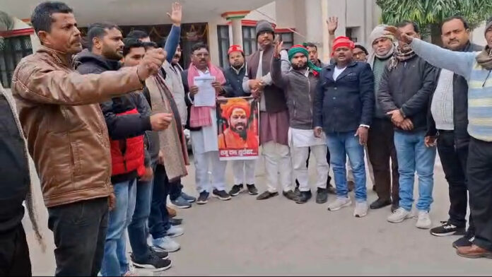 महाराजगंज जिले के जिलाधिकारी कार्यालय पर आज समाजवादी पार्टी के जिला अध्यक्ष विद्यासागर यादव के नेतृत्व में कार्यकर्ताओं ने प्रदर्शन करते हुए जिलाधिकारी को ज्ञापन दिया है. जिला अध्यक्ष समाजवादी पार्टी विद्यासागर यादव बताया कि अयोध्या के महंत राजू दास के द्वारा स्वर्गीय मुलायम सिंह यादव के ऊपर आपत्तिजनक टिप्पणी करने के मामले में समाजवादी पार्टी के कार्यकर्ता और आम जानमानस में क्रोध है.